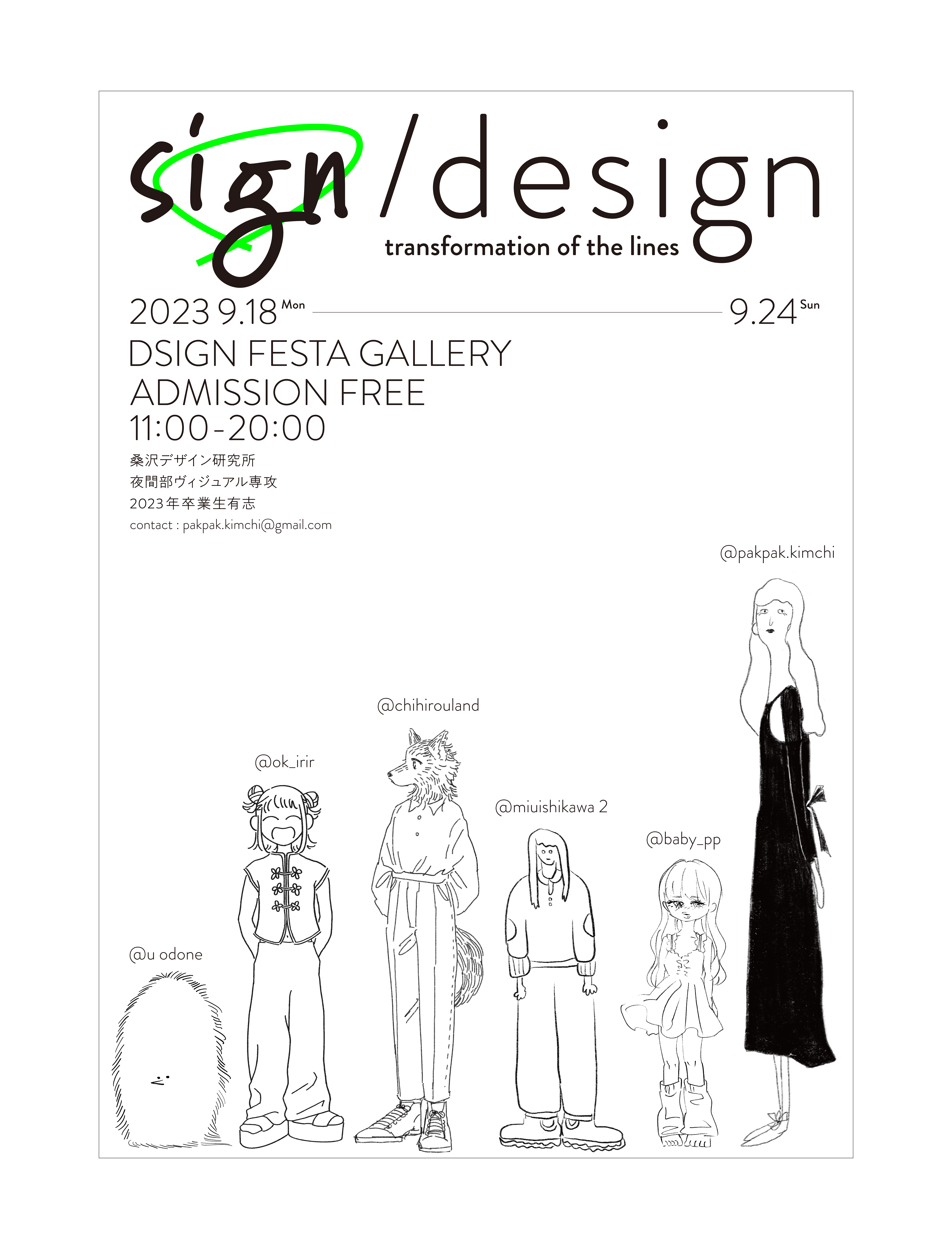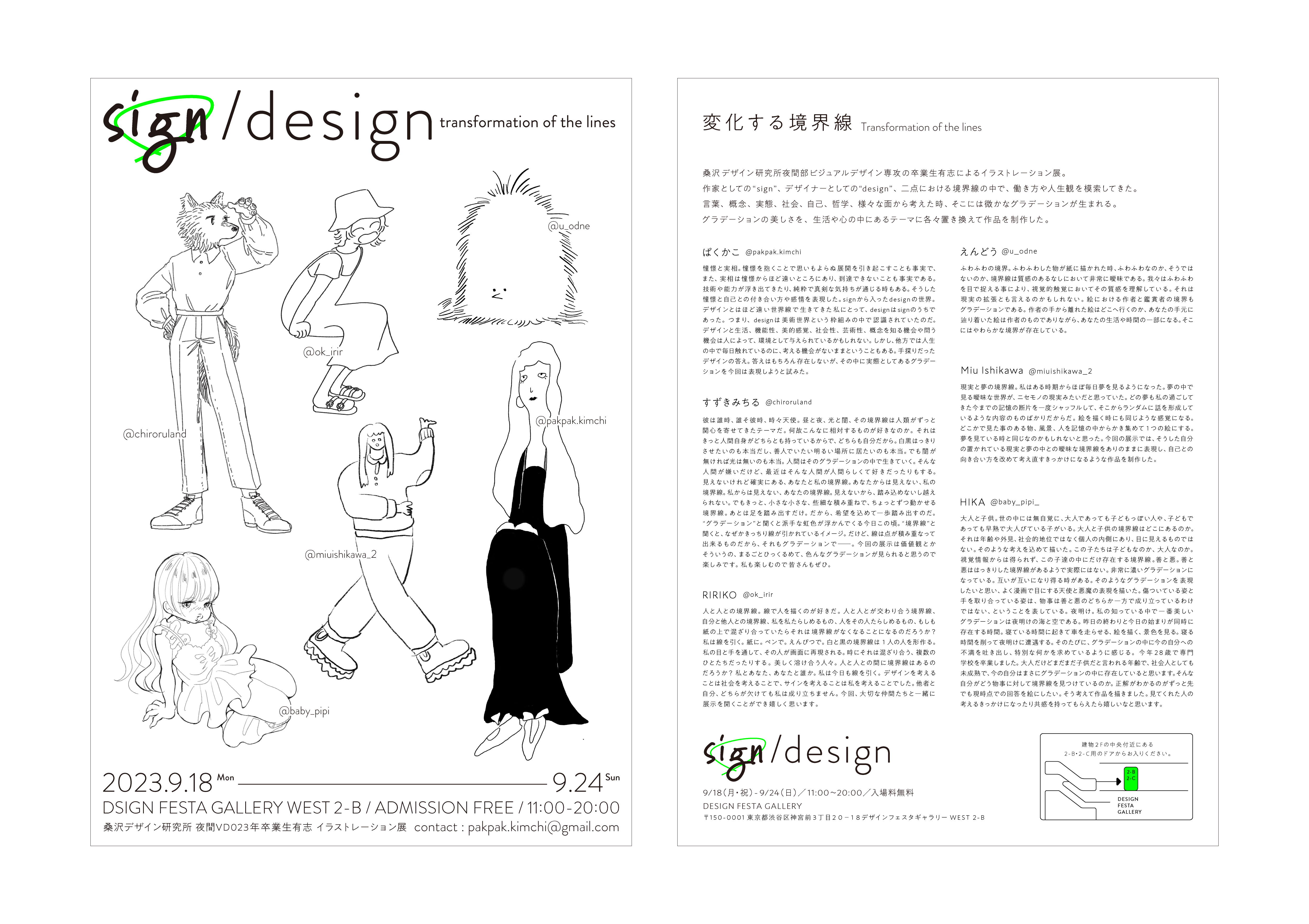 桑沢デザイン研究所VD2Bの卒業生6名によるイラストレーション展「Sign Design」キービジュアルをデザインしました。