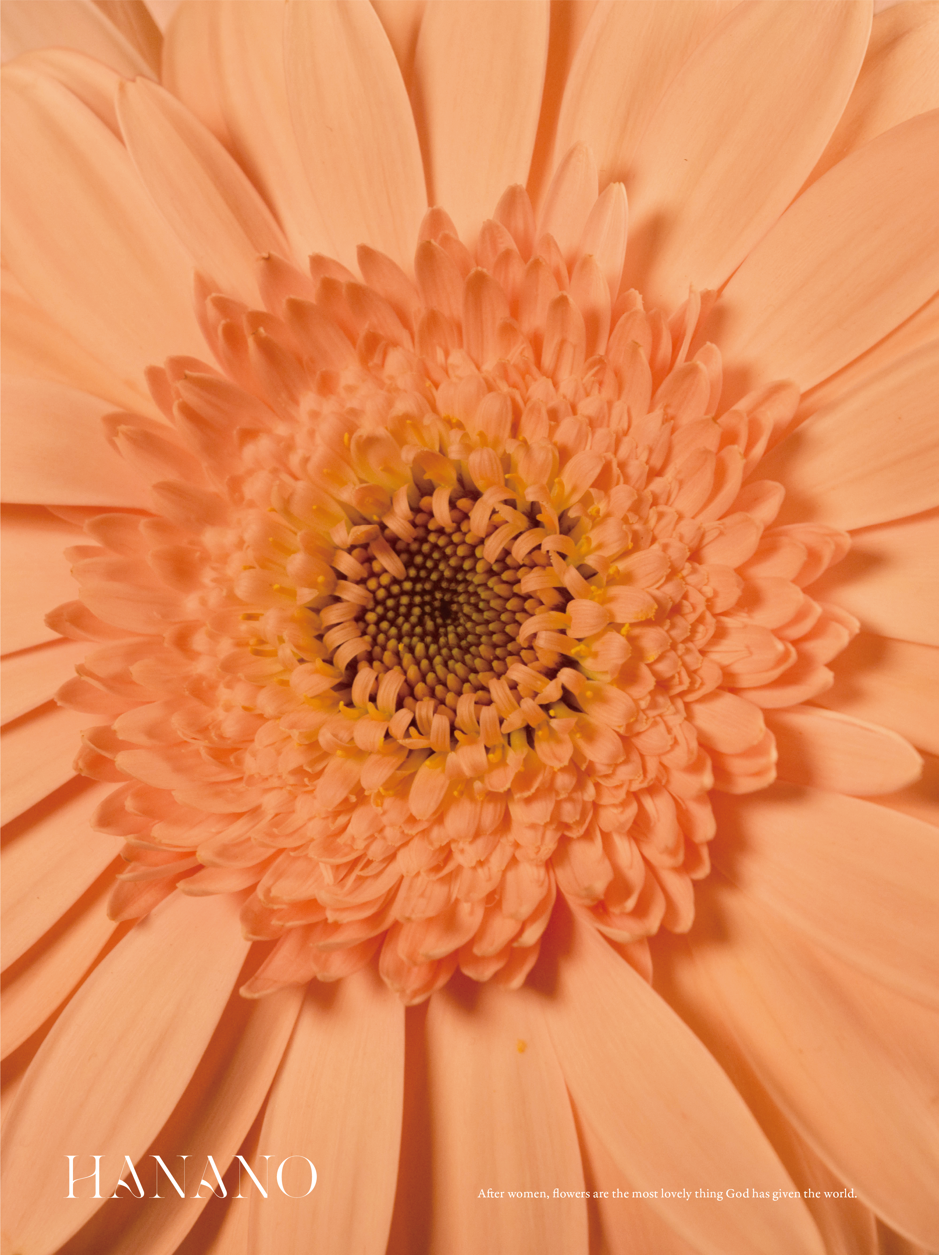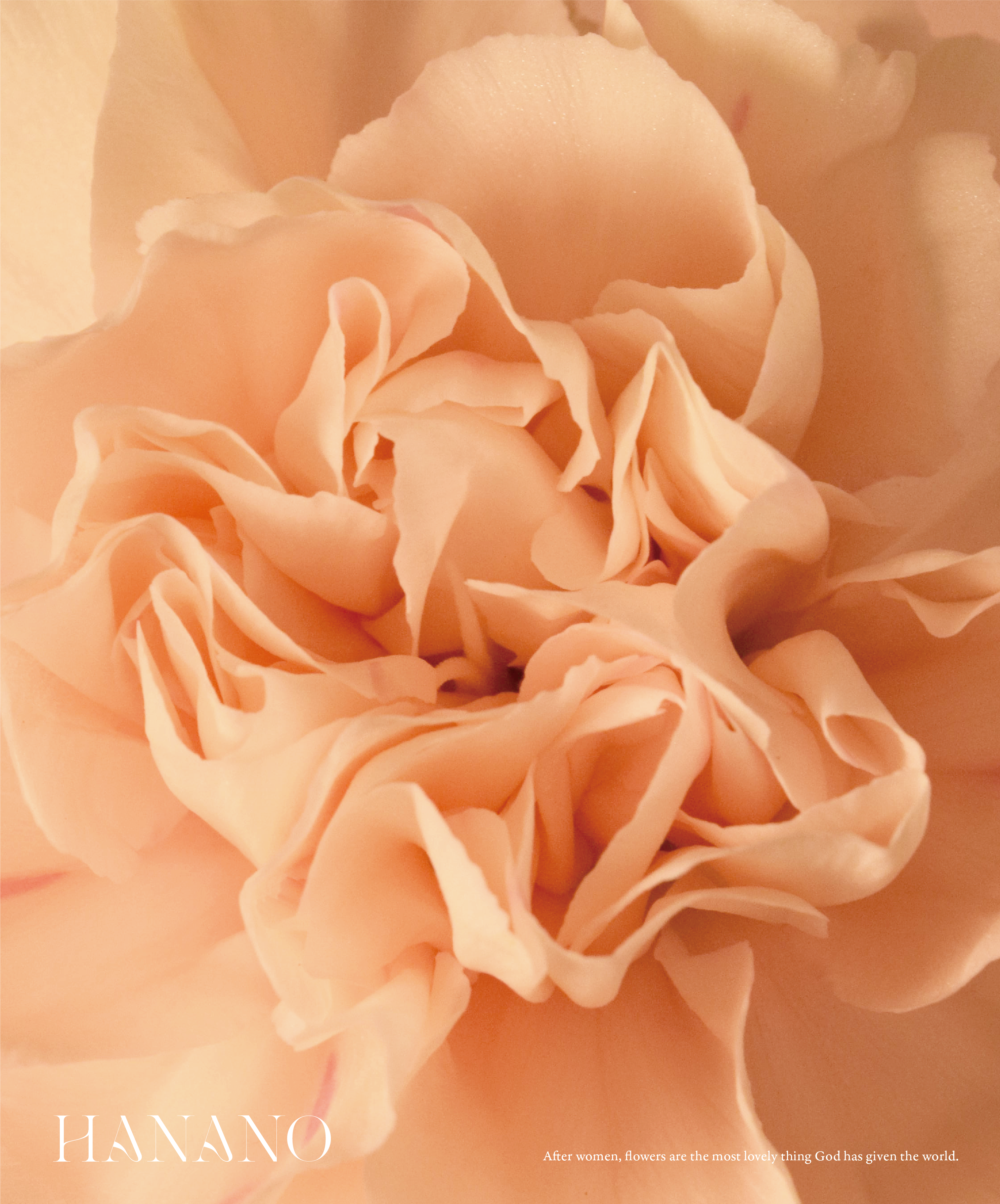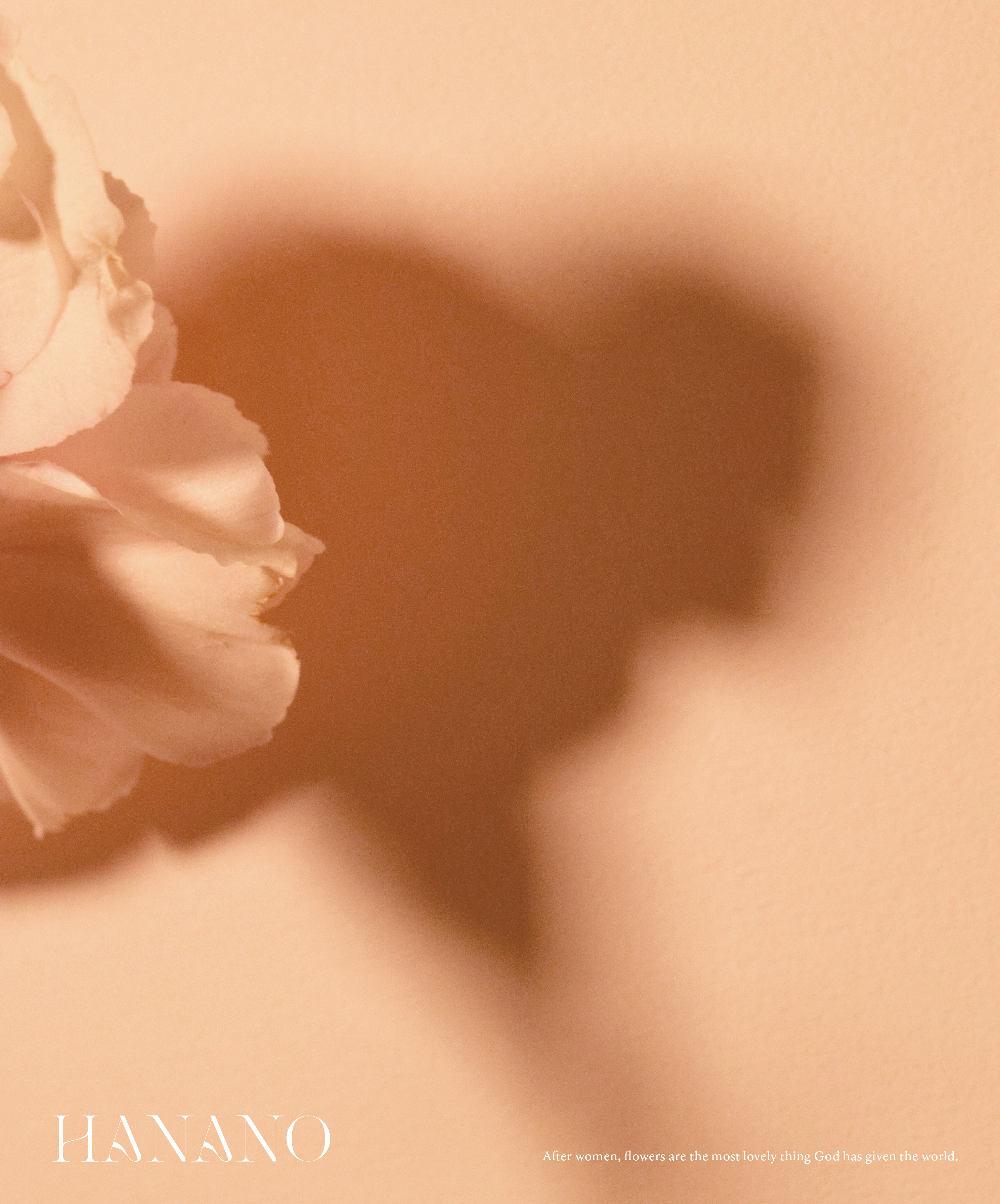 架空の花屋さんHANANOのコンセプトは、クリスチャンディオールの言葉からとった「神様がこの世に与えた美しいものは、女性。その次に、花。」です。女性のための、女性の次に美しい花を扱う、花屋さんのポスターを制作しました。女性の華やかさは、決して身につけた装飾や色彩の数で左右されるものではありません。佇まい、考え方、肌や髪の細部から滲み出る美しさが全ての根底となります。それは花も同様であり、筒状花や花びらの細部、花が作る影にフォーカスした写真を撮影し、ポスターに使用しました。